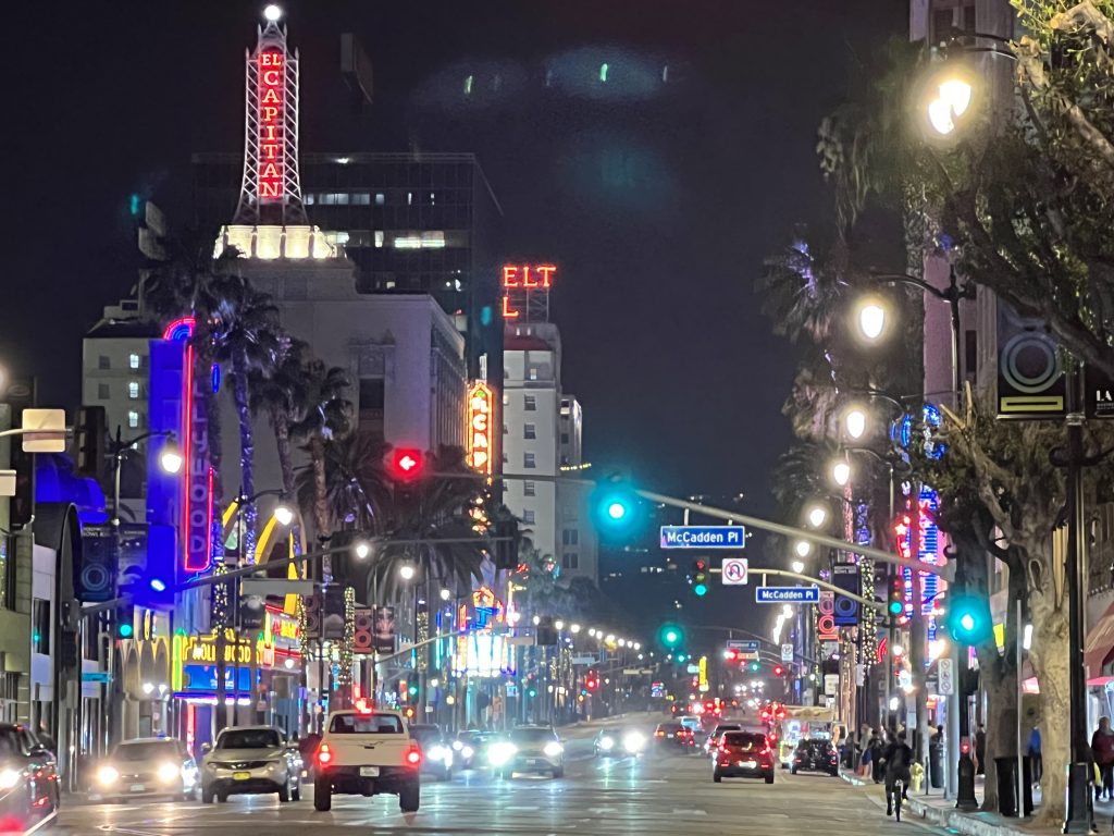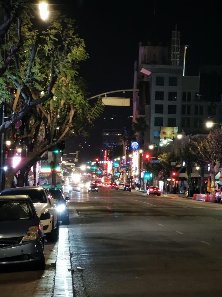Weil wir in der Nähe waren, sind wir danach über den Hollywood Boulevard zurück zum Hotel gefahren. Neben glitzernden Lichtern hat man heruntergekommene Gebäude und neben Touristen viele Obdachlose gesehen. Erster Eindruck: weniger glamourös als gedacht.