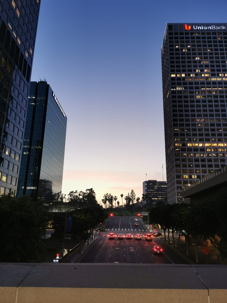Am zweiten Tag in LA waren wir morgens erstmal damit beschäftigt Krücken für mich in einem Geschäft zu finden (wir hatten dies bereits bei mehreren Pharmacies probiert, waren nicht fündig geworden und hatten dann über Amazon bestellt, was leider nicht geklappt hatte 🙈). Als das endlich erledigt war, haben wir die Hotels für die nächsten Tage gebucht und sind gegen 17 Uhr nochmal los zur Union Station. Diesmal ging’s für uns mit dem DASH Bus rein nach Downtown (alle Busse kostenlos), wo wir nochmal die interessantesten Wolkenkratzer angeschaut haben. Wieder an der Union Station angekommen sind wir nochmal zum Hollywood Boulevard gefahren, über den wir diesmal auch ein kleines Stück geschlendert sind. Dabei haben wir viele prominente Sternchen gesehen. Erschöpft sind wir abends ins Bett gefallen.