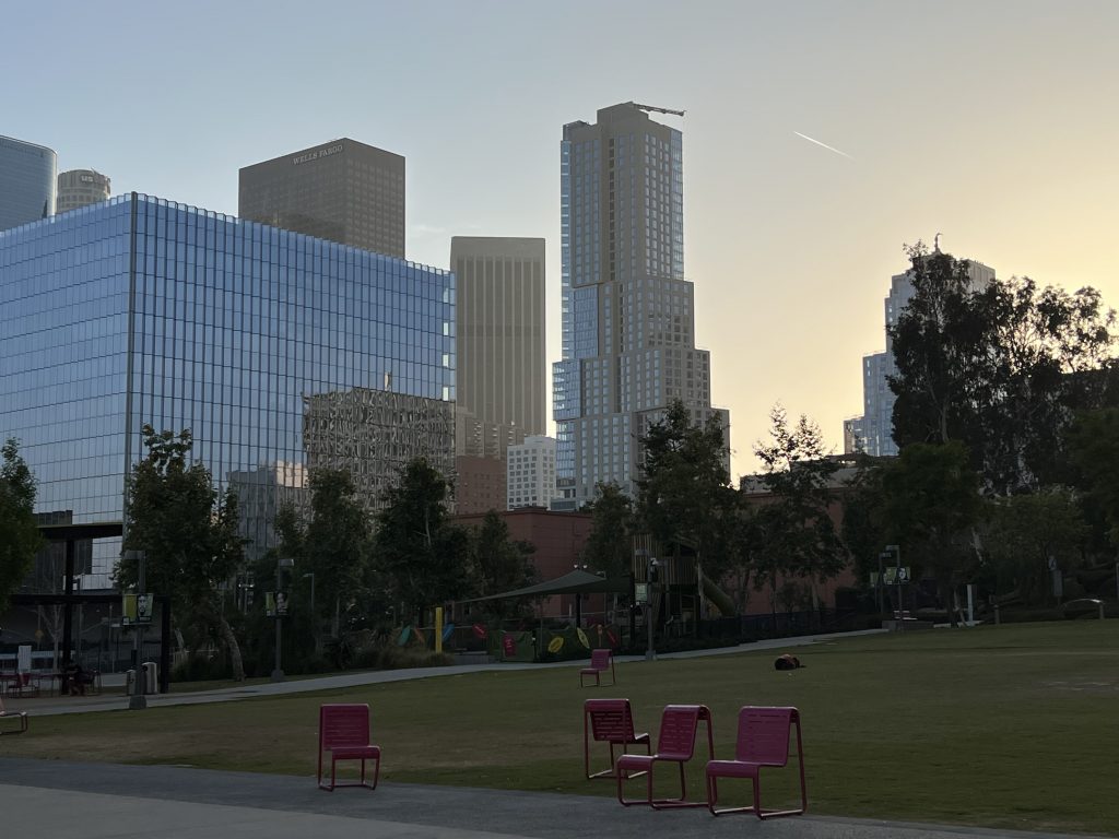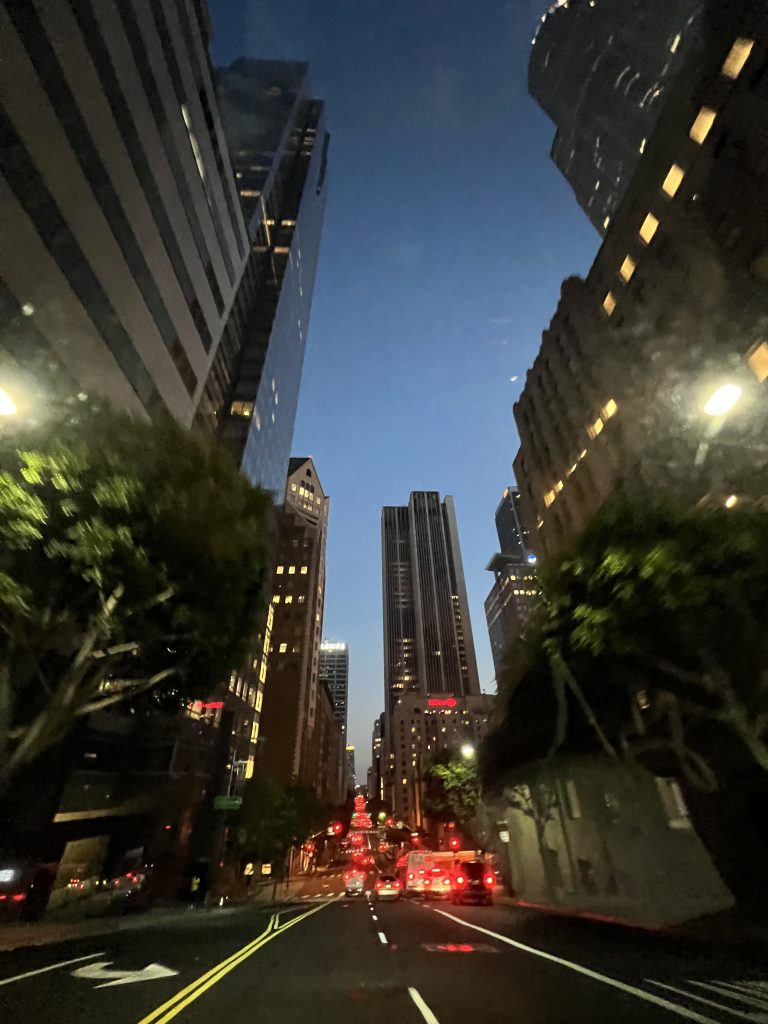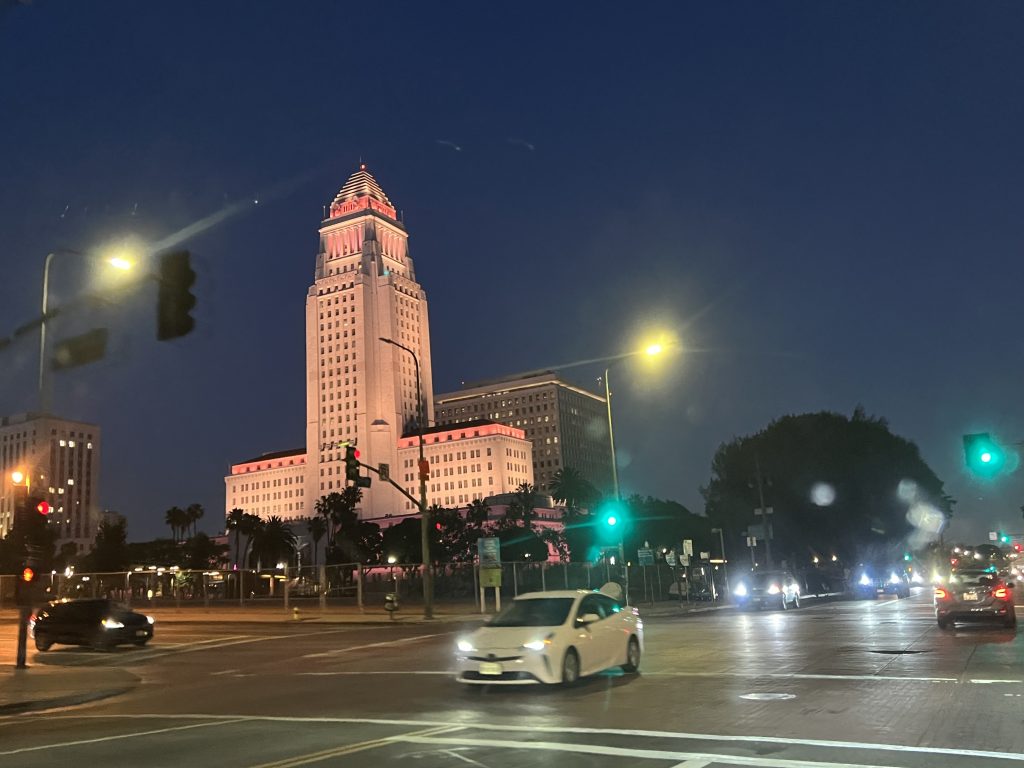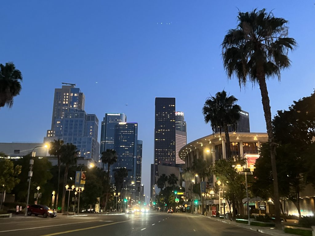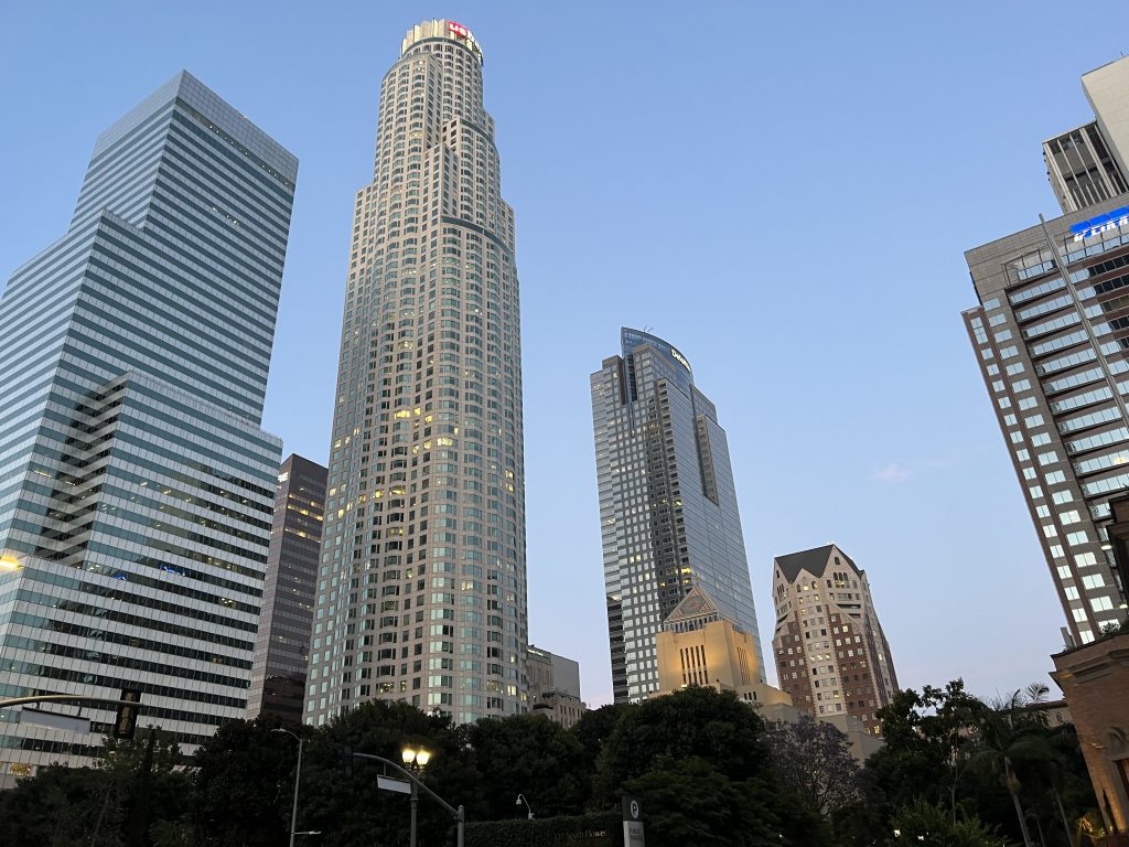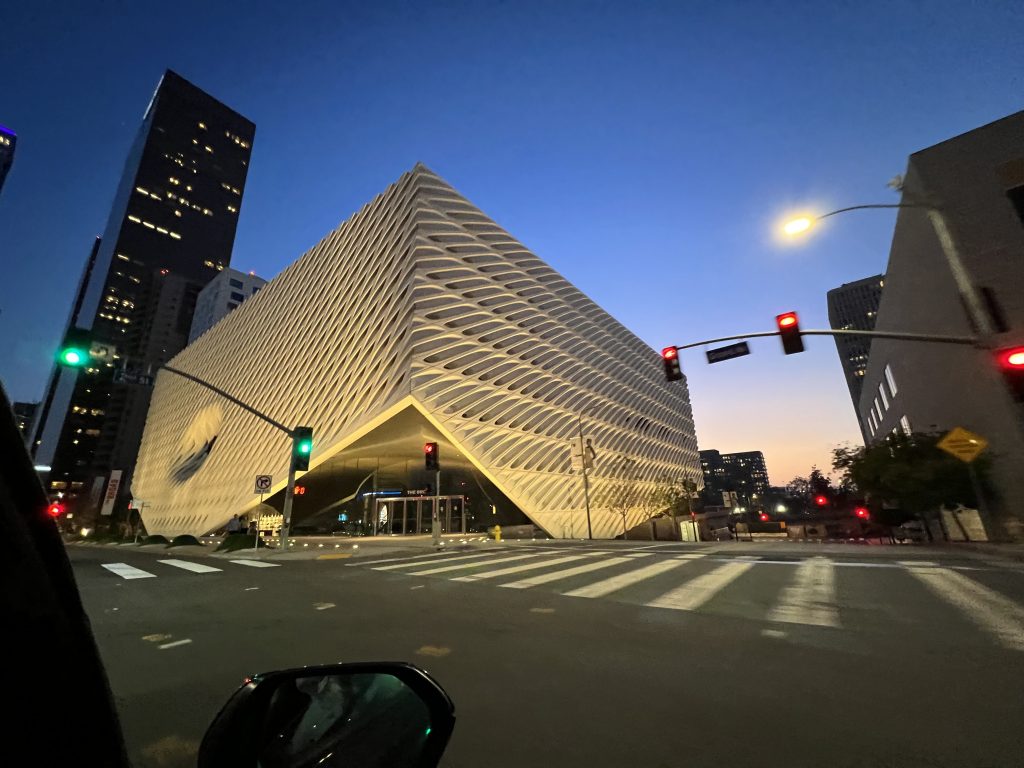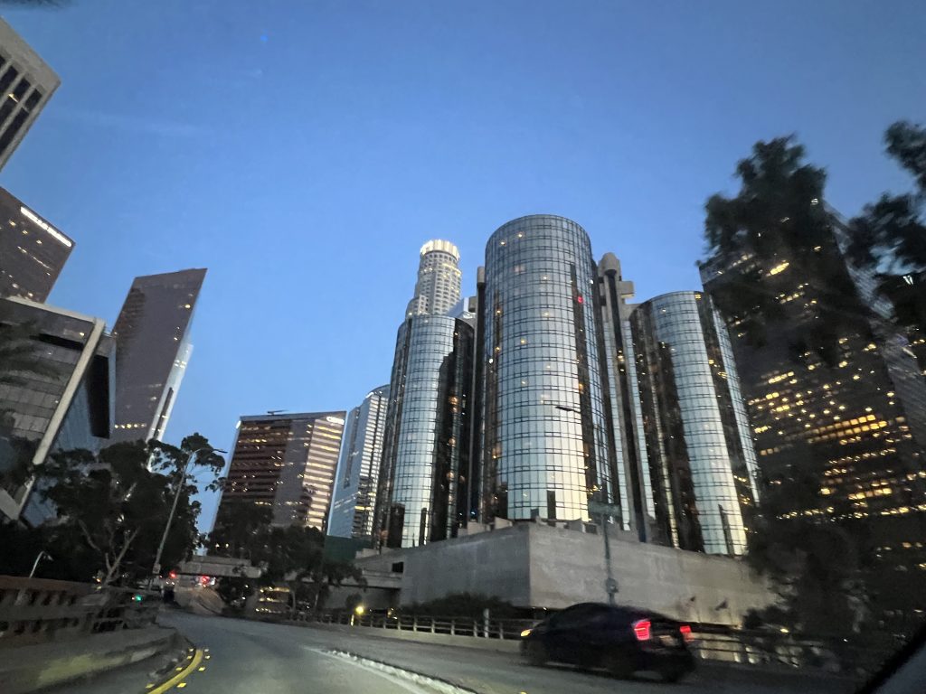 Nach der Rückkehr zum Auto ging es weiter nach Downtown. Früh sollte man sich dort unter der Woche nicht ins Gedränge begeben. Aber nach 17 Uhr hat sich der Stau in der “Innenstadt” dann auch aufgelöst. Wir konnten im Vorbeifahren ungehindert einen Blick auf die Walt Disney Concert Hall, das ‘The Broad’, das Westin und die City Hall erhaschen. Danach ging’s zurück ins Hotel zu einem späten Abendessen.