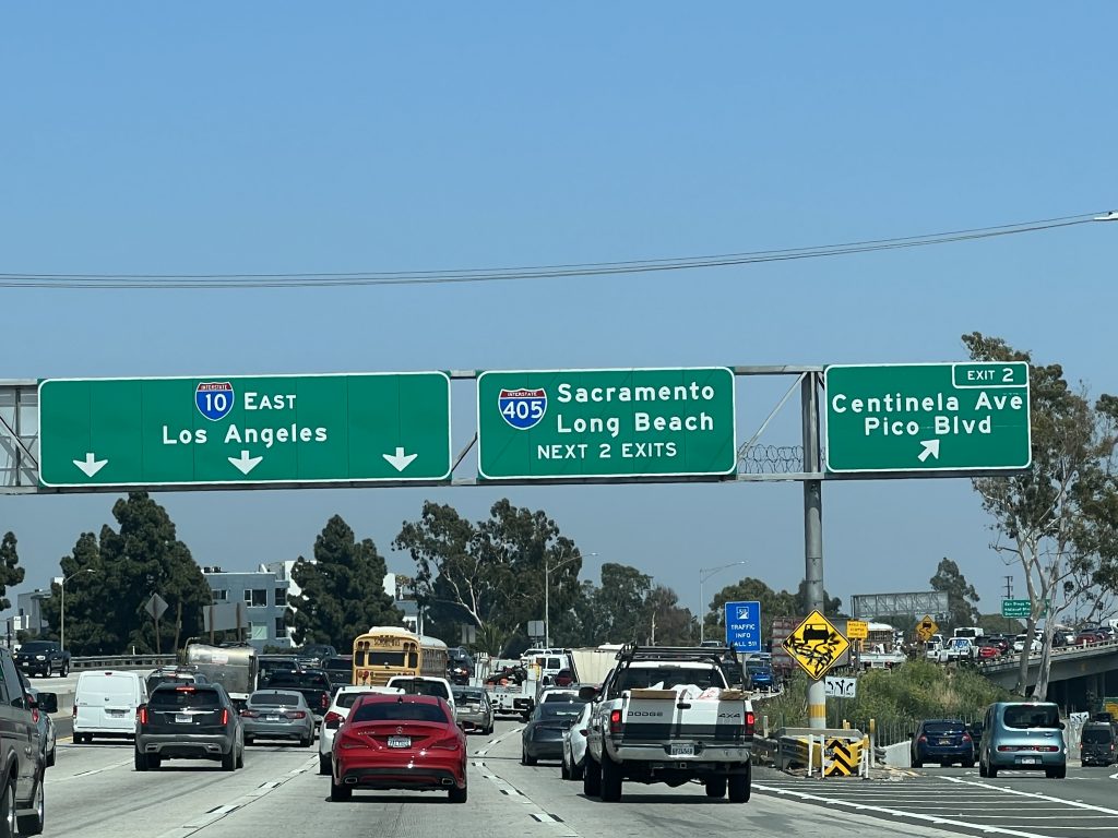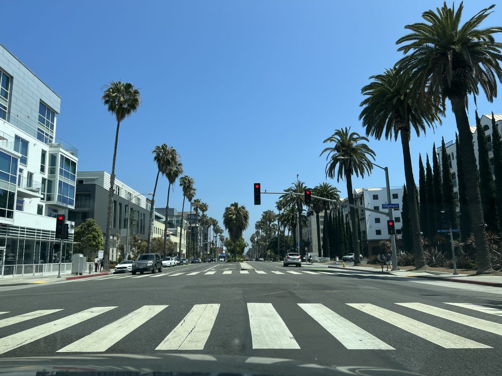 Am ersten ganzen Tag in LA haben wir uns dann entschieden erstmal mit dem Auto Richtung Beverly Hills zu fahren. Die Fahrt durch das Gebiet Los Angeles (immerhin 100km lang und 50km breit) ist recht anstrengend als Fahrer. 10-12 spurige Autobahnen, teils 4 Brücken mit Ab-/Auffahrten übereinander und Autos – je nach Uhrzeit dicht an dicht gedrängt – schieben sich über die Straßen.