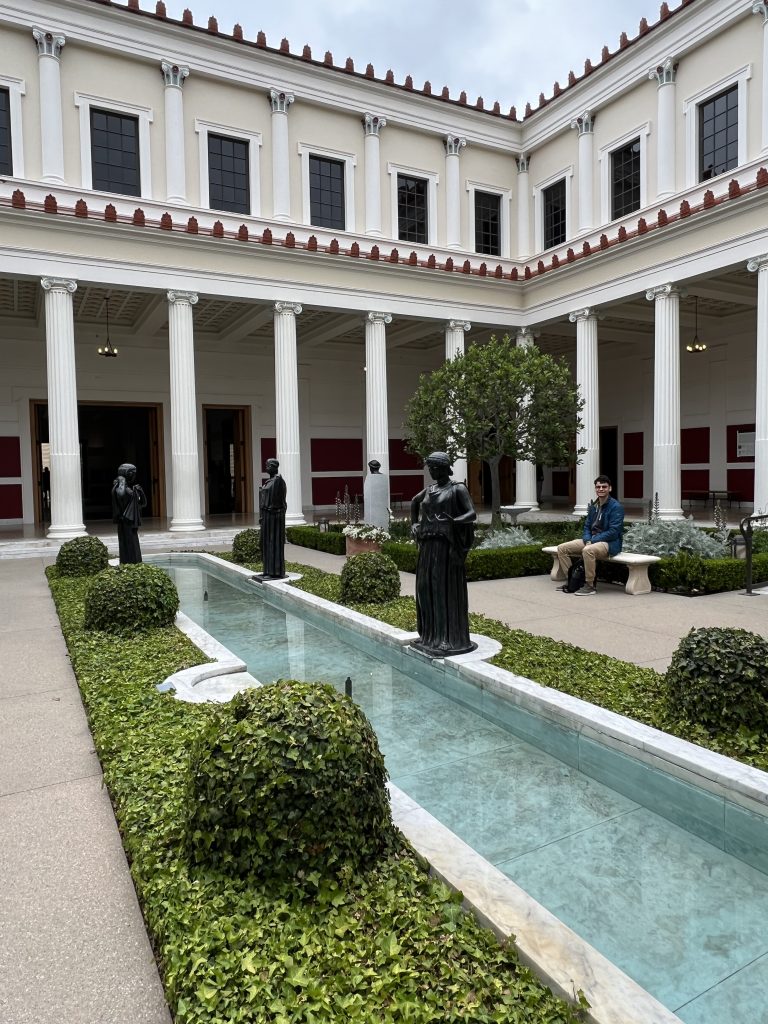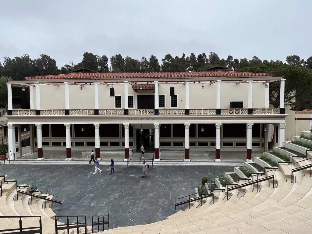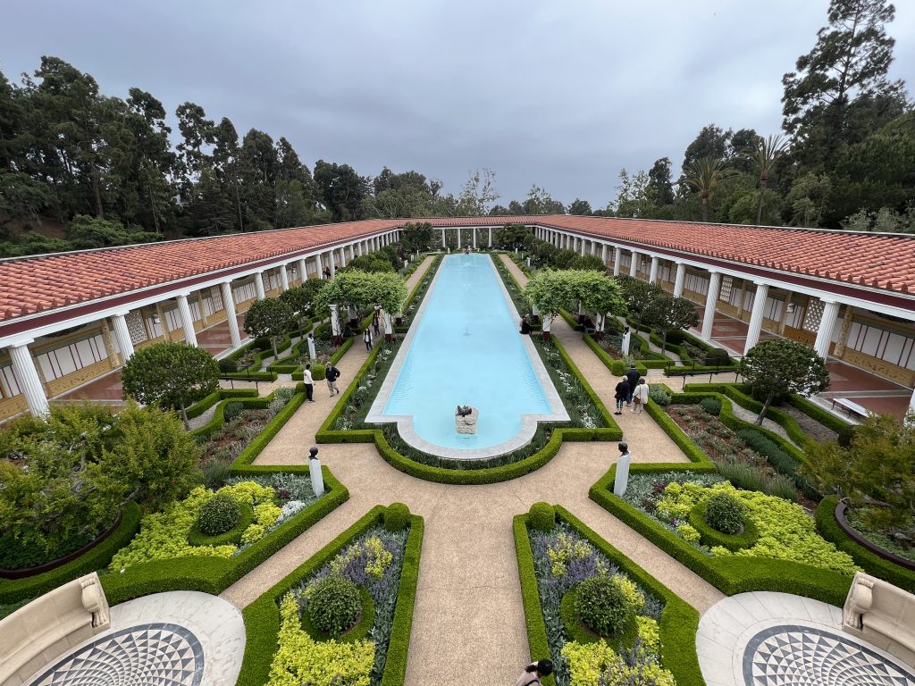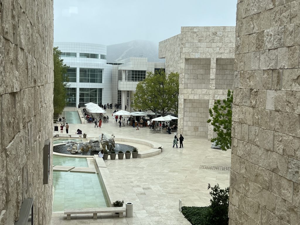 Für den dritten Tag hatten wir uns Kunst und Kultur aufgespart! Ziele: das Getty Center und die Getty Villa, beides Zentren, die sowohl architektonisch begeistern sollten als auch einen unglaublichen Schatz an Kunstobjekten beherbergen. Das Getty Center war schon überwältigend. Alleine die Größe kann einen umhauen und die Gebäude mit der modernen Architektur waren beeindruckend. Im Innern beherbergt es ein Fülle an Schätzen, für die die Zeit kaum reichte. Auch die Parkanlage war traumhaft und wäre an dem Tag das Wetter schön gewesen, so hätte man einen wundervollen Blick über LA gehabt, der uns leider verwehrt blieb. Die Villa war dann das genaue Gegenteil des Getty Centers. Nachgebaut von einer römischen Villa beherbergte sie alles Antike und war recht pompös. Nach dem Kulturprogramm gab’s heute mal ein chinesisches Abendessen bei Panda Express und dann ging’s zurück zum Hotel.