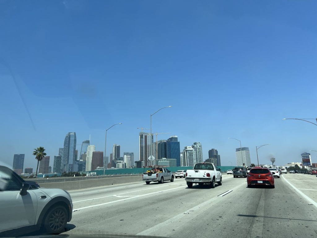Wir wissen beide nicht unbedingt, was wir von dieser Stadt halten sollen. Den erste Eindruck, dass uns die Stadt nicht gefallen hat, haben wir revidiert. In gewisser Weise hat uns LA fasziniert. Auf der einen Seite ist LA für uns glitzernd (vor allem Nachts) mit überraschend viel grün durchsetzt (selbst in Downtown waren immer wieder Parks zwischen den Wolkenkratzern). Man konnte sich in kurzer Zeit recht gut orientieren, obwohl die Stadt riesig und unüberschaubar schien. Und je nach Viertel ist LA regelrecht schön, gepflegt bis hin zu richtig protzig. Auf der anderen Seite ist diese unglaubliche Armut mit so vielen obdachlosen Menschen. Selbst zwischen den riesigen Straßen an steilen Abhängen waren Zelte aufgebaut. Irgendwie wirkt alles etwas chaotisch, mit riesigen Straßen und Kreuzungen, auf denen Autos viel zu häufig im Stau stehen. Sehr oft umweht einen ein Duft nach Gras. Aus der Ferne war die Stadt stets nur sehr verschwommen zu sehen. Ob das auf Smog oder das Wetter zurückzuführen ist, wissen wir nicht, doch je näher man kam umso klarer wurde das Bild. Die Eindrücke hier sind wirklich schwer in Worte zu fassen. Für uns war es ganz anders als wir es uns vorgestellt haben und wir waren froh, als es dann weiterging.