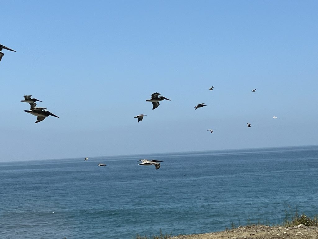 Nachdem wir uns ein paar Tage Ruhe gegönnt hatten, ging es für uns weiter Richtung Los Angeles! Wir durchfuhren Santa Barbara, diesmal auf dem Highway 1 direkt durch die Stadt. Man hat diese große Straße kaum bemerkt, weil sie so begrünt ist. Es ging weiter an der Küste entlang, an der Pelikane in den interessantesten Formationen direkt neben uns herflogen. Als wir anhielten, um die Vögel zu bewundern, sahen wir Delfine direkt am Strand unter uns in den Wellen spielen.
